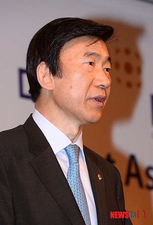 【서울=뉴시스】박찬수 기자 = 윤병세 외교부 장관이 9일 오전 서울 중구 소공동 웨스틴조선호텔에서 외교부와 동아시아연구원(EAI) 공동주최로 열린 '통일한국의 외교비전과 동아시아의 미래' 국제회의에서 기조연설을 하고 있다.