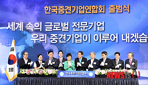 한국중견기업연합회 출범식, 박수치는 박 대통령과 인사들