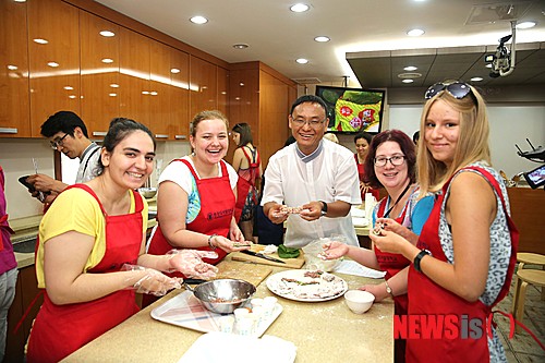 【서울=뉴시스】원광디지털대학교(총장 성시종, www.wdu.ac.kr)는 지난 24일, 러시아 모스크바 세종학당 학생 및 교사 약 30여명을 전북 익산 본교로 초청해 한국 문화 체험 프로그램을 진행했다. 학생들이 전을 만들고 있다. 2014.07.25. (사진=원광디지털대학교 제공)