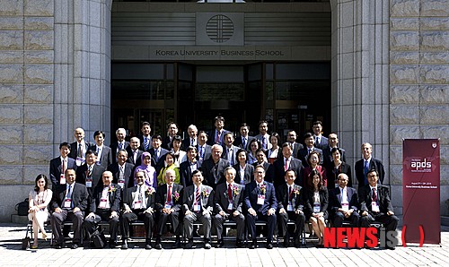 【서울=뉴시스】28일 서울 성북구 고려대 안암캠퍼스 경영대학 LG-POSCO경영관과 현대자동차경영관에서 제 2회 아시아·태평양 경영대학장 서밋이 열린 가운데 참석자들이 기념촬영을 하고 있다. 2014.08.28. (사진=고려대학교 제공)