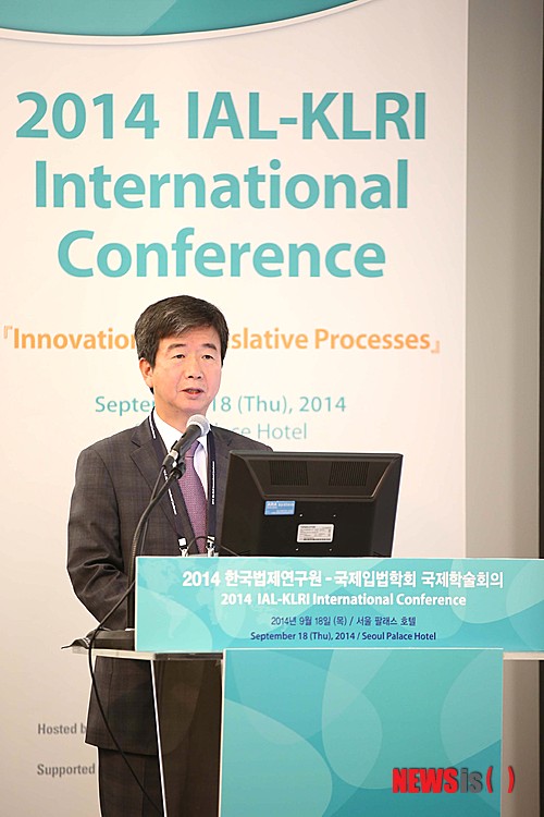 【서울=뉴시스】18일 서울 강남구 팔래스호텔에서 열린 '한국법제연구원-국제입법학회 학술대회'에 참석한 한국법제연구원 이원 원장이 환영사를 하고 있다. 2014.09.18. (사진=한국법제연구원 제공)