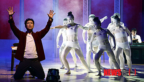 【서울=뉴시스】홍찬선 기자 = '에쿠우스' '아마데우스'로 유명한 영국 작가 피터 셰퍼의 또 다른 대표작 연극 '고곤의 선물' 프레스 리허설이 열린 18일 오후 서울 종로구 세종문화회관 M씨어터에서 박상원(에드워드 담슨 역)과 배우들이 열연을 하고 있다. 2014.09.18.