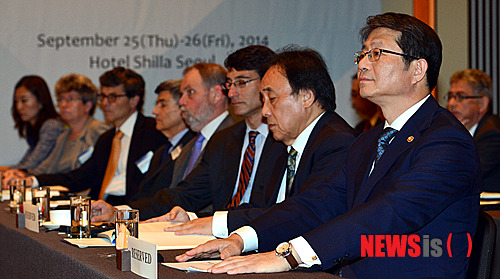 【서울=뉴시스】조종원 기자 = 류길재 통일부 장관이 25일 오전 서울 중구 신라호텔에서 열린 '한반도국제포럼 2014'에 참석하고 있다. 2014.09.25.