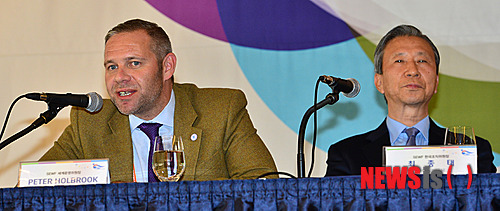 기자회견 참석한 피터 홀브룩 세계조직위원장