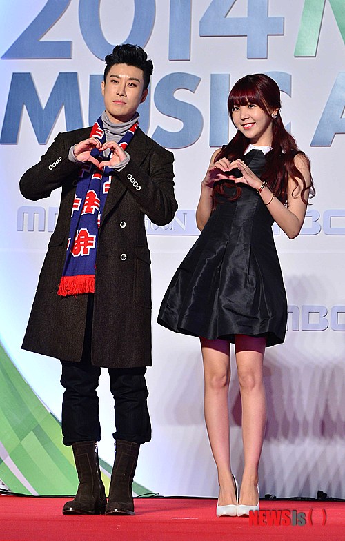 【서울=뉴시스】고승민 기자 = 가수 산이와 레이나가 13일 저녁 서울 올림픽공원 체조경기장에서 열린 2014 멜론 뮤직어워드 포토타임에서 포즈를 취하고 있다. 2014.11.13.