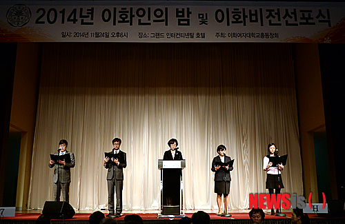 【서울=뉴시스】박상훈 기자 = 이화여자대학교가 24일 오후 서울 그랜드인터컨티넨탈호텔에서 ‘2014 이화인의 밤 및 이화비전선포식’을 개최했다.