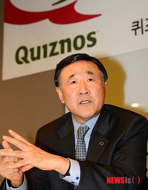 【서울=뉴시스】김진아 기자 = 김영덕 유썸 퀴즈노스 코리아 대표이사가 11일 오후 서울 중구 서울스퀘어에서 열린 '퀴즈노즈 글로벌 CEO 방한 기자간담회'에서 취재진의 질문에 답하고 있다.