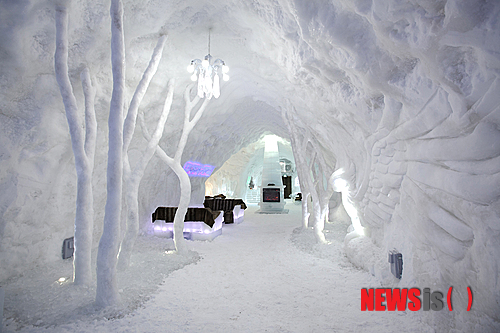 【창녕=뉴시스】안지율 기자 = 겨울축제의 대명사로 알려진 경남 창녕 '부곡하와이 얼음조각축제'가 '얼음나라' '눈의 나라' '겨울나라' 그리고 새롭게 선보이는 '빛의 나라'의 주제로 열린 26일 아이스호텔의 얼음이 장관을 연출하고 있다. 2014.12.27.