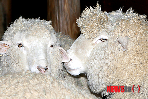 【평창=뉴시스】김경목 기자 = 2015년은 을미년(乙未年) 청양띠의 해다. 양은 성질이 온순하다. 그래서 성질이 매우 온순한 사람을 양 같다고 비유한다. 양은 또 무리지어 사는 게 특징이다. 양의 털은 직물의 원료로 쓰인다. 고기와 젖, 가죽으로도 이용된다. 한자(羊)로는 면양(緬羊)과 산양(山羊)을 함께 포함해 해석하거나 분리해 지칭해 헷갈린다. 엄격히 말하면 면양을 양이라 부른다. 산양은 우리말로 염소(髥牛)라고 부른다. 우리나라에 사육되는 대부분의 품종은 스페인이 원산지인 메리노종(merino種)이다. 2014.12.31.