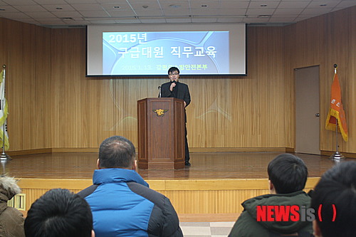 【춘천=뉴시스】박혜미 기자 = 강원소방안전본부(본부장 김성곤) 윤상기 방호구조과장이 13일 춘천소방서에서 고품질 구급서비스를 위한 직무교육을 실시하고 있다. 2015.01.13. (사진=강원소방안전본부 제공)