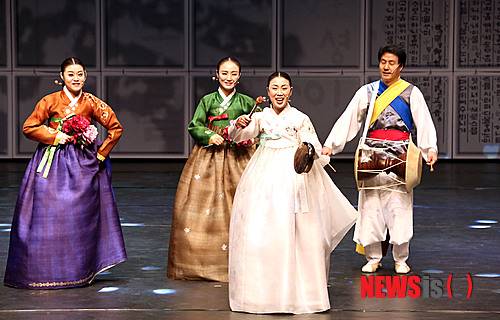 【서울=뉴시스】박동욱 기자 = 20일 오후 서울 서초구 국립국악원 예악당에서 열린 '국악인 신년 인사회'에서 유지숙 명창이 신년기원굿 공연을 선보이고 있다. 2015.01.20. (사진=국립국악원 제공)