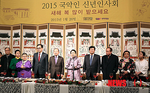【서울=뉴시스】박동욱 기자 = 20일 오후 서울 서초구 국립국악원 예악당에서 열린 '국악인 신년 인사회'에서 김해숙(오른쪽 다섯번째) 국립국악원장이 인사말을 하고 있다. 2015.01.20. (사진=국립국악원 제공)