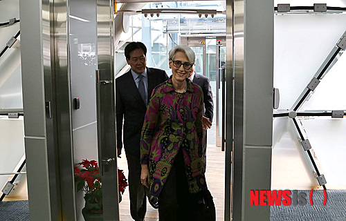 【서울=뉴시스】웬디 셔먼 미국 국무부 정무담당 차관이 29일 서울 종로구 아산정책연구원에서 열린 '동북아의 지역 역학과 전략적 고려'를 주제로 한 비공개 전문가 라운드테이블에 참석하고 있다. 2015.01.29. (사진=아산정책연구원 제공)