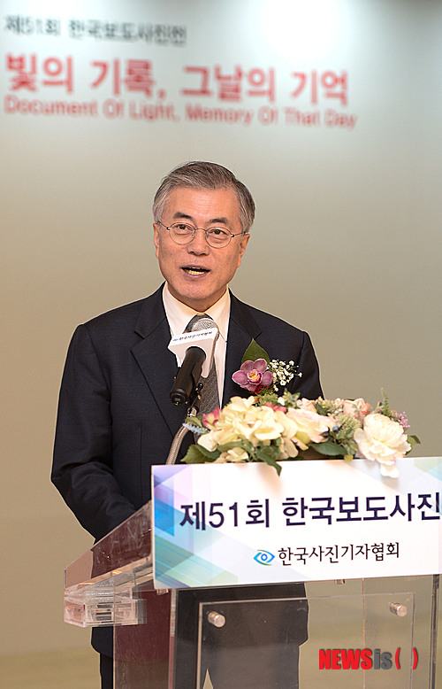 【서울=뉴시스】사진공동취재단 = 문재인 새정치민주연합 대표가 10일 오전 서울 중구 동대문디자인플라자(DDP)에서 열린 '제51회 한국보도사진전 - 빛의 기록, 그날의 기억' 개막식에서 축사를 하고 있다. 2015.02.10.