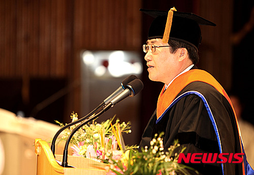 【서울=뉴시스】박동욱 기자 = 지난 28일 전북 익산시 원광디지털대학교에서 열린 '2015학년도 입학식'에서 남궁문 총장이 훈사를 하고 있다. 2015.03.01. (사진=원광디지털대학교 제공)