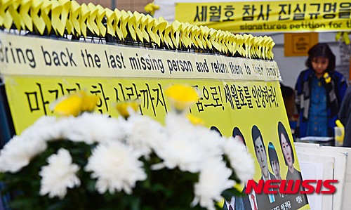 【서울=뉴시스】김진아 기자 = 21일 오후 서울 광화문 광장에 설치된 세월호참사 진상규명을 위한 농성장에서 416 가족협의회를 비롯한 세월호참사국민대책회의 회원들이 진상규명 촉구 문화제를 하고 있다. 2015.03.21.
