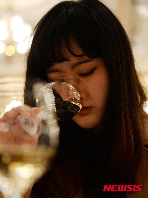 【서울=뉴시스】고범준 기자 = 26일 오전 서울 강남구 논현동 임피리얼 팰리스 호텔에서 프랑스 농업식품산림부(MAAF)가 주최, 소펙사 코리아(SOPEXA KOREA)가 주관하는 제14회 한국 소믈리에 대회 1차 예선에서 참가자들이 와인 향을 음미하고 있다. 2015.03.26.