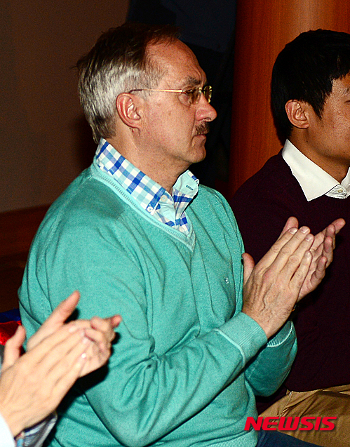【서울=뉴시스】조성봉 기자 = 울리 슈틸리케 대한민국 축구대표팀 감독이 3일 저녁 서울 서초구 국립국악원 풍류사랑방에서 국립국악원 ‘금요공감’ 공연을 관람하며 박수를 치고 있다. 2015.04.03.