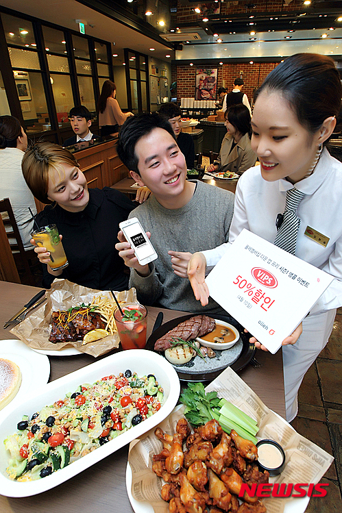 ‘할인혜택(DOWN)’으로 4월 10일 빕스(VIPS) 50%할인, ‘문화혜택(UP)’으로 연극 ‘옥탑방 고양이’를 2만원 할인, ‘무료혜택(FREE)’으로는 해외 관광명소 7곳의 입장권을 제공하는 ‘글로벌 프리’와 매월 트렌디한 아이템을 추첨을 통해 무료로 제공하는 ‘득템프리’가 진행된다. 2015.04.06. (사진=KT 제공)