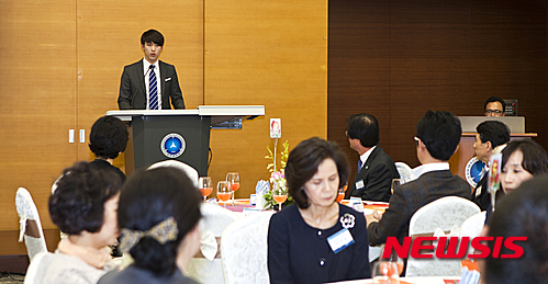 【서울=뉴시스】조수정 기자 = 26일 오후 삼육대학교 백주년기념관에서 열린 ‘비전드림 발전기금 100억 달성 감사 모임’에서 삼육대 영미어문학부에 재학 중인 한상민 학생이 장학수혜자 대표로 기부자에게 쓴 편지를 낭독하고 있다.
