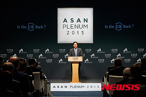 【서울=뉴시스】28일 오전 서울 용산구 그랜드하얏트호텔에서 열린 '아산플래넘 2015'에 참석한 함재봉 아산정책연구원장이 환영사를 하고 있다. 2015.04.28. (사진=아산정책연구원 제공)