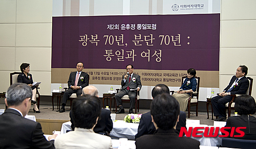이화여대 윤후정 통일포럼은 한국 최초 여성 헌법학자이자 제10대 이화여대 총장을 역임한 윤후정 현 명예총장이 “우리 사회의 가장 시급한 과제는 분단 극복”이라는 신념에 따라 2013년부터 15억원을 기부하면서 마련된 통일 논의의 열린 장이다. 2015.05.13.(사진=이화여자대학교 제공)