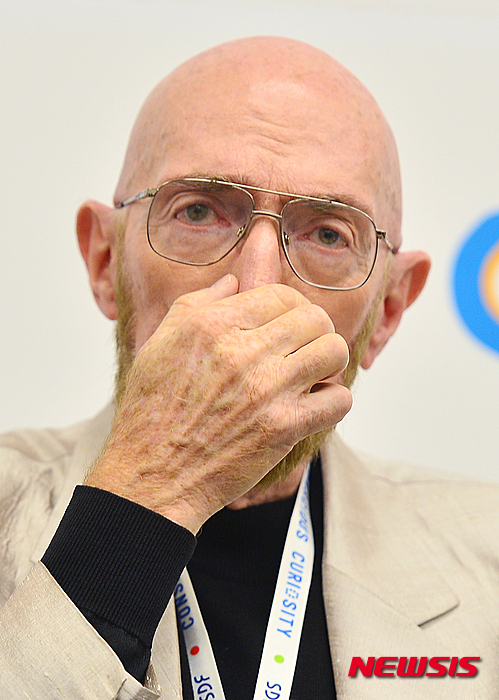 【서울=뉴시스】고승민 기자 = 이론 물리학자이자 영화 '인터스텔라'의 과학적 자문을 맡은 킵손(Kip Thorne) 박사가 20일 오전 서울 동대문디자인플라자에서 열린 서울디지털포럼 2015에 참석, 기자회견을 하고 있다. 2015.05.20.