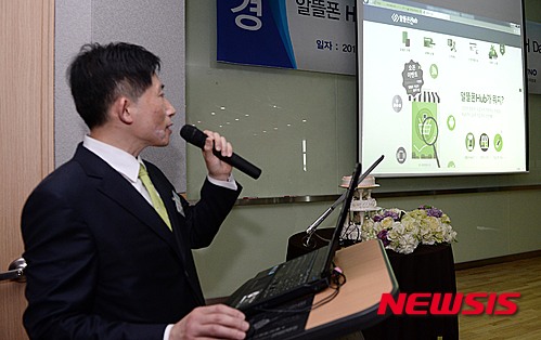 【서울=뉴시스】김인철 기자 = 21일 오전 서울 성동구 성수IT종합센터에서 열린 알뜰폰 Hub 오픈 및 500만 돌파기념 미디어데이에서 소병도 KAIT 팀장이 알뜰폰 허브사이트 시연 발표를 하고 있다. 2015.05.21.