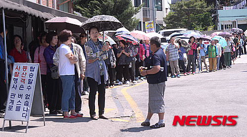 【서울=뉴시스】장세영 기자 =부처님 오신 날을 하루 앞둔 24일 오후 서울 강북구 우의동 북한산입구 정류장에 더운 날씨에도 많은 불교신자들이 도선사 셔틀버스를 타기위해 길게 줄을서고 있다. 2015.5.24.