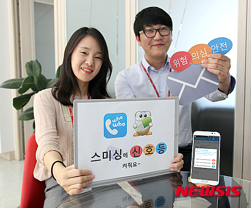 후후는 이스트소프트가 서비스하는 모바일 백신 ‘알약 안드로이드’와의 제휴를 통해 문자의 스미싱 위험도를 신호등처럼 3단계로 알려주는 기능을 추가 업데이트 했다. 2015.05.26. (사진=KT CS 제공)