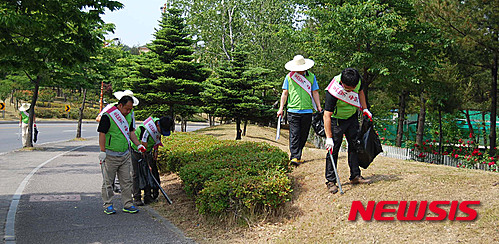 【강릉=뉴시스】김경목 기자 = 29일 강원 강릉우편집중국(국장 신국언) 국원들이 강릉시 교동 일대에서 환정화활동을 벌이고 있다. 2015.05.29. (사진=강릉우편집중국 제공)