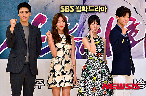 【서울=뉴시스】조종원 기자 = 3일 오후 서울 양천구 SBS 사옥에서 열린 SBS 새 월화드라마 '상류사회' 제작발표회에서 배우 성준, 유이, 임지연, 박형식이 포즈를 취하고 있다.
