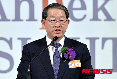 【서울=뉴시스】임태훈 기자 = 강호갑 한국중견기업연합회 회장이 8일 오후 서울 중구 플라자호텔 그랜드볼룸에서 열린 '중견기업 최고경영자 강연회'에서 환영사를 하고 있다. 2015.06.08.