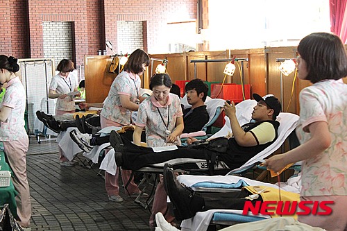 【서울=뉴시스】지난 14일 서울 여의도 순복음교회가 한마음혈액원과 함께 메르스로 부족한 혈액수급에 도움을 주기 위해 29차 헌혈캠페인을 진행하고 있다. 2015.06.16. (사진=한마음혈액원 제공)