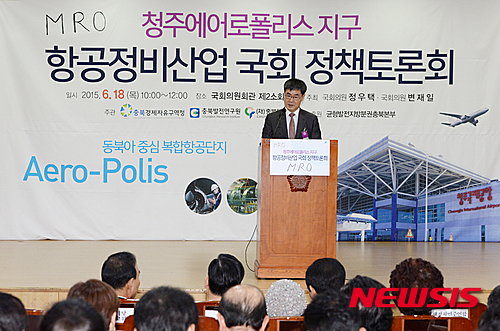 【서울=뉴시스】조수정 기자 = 18일 오전 서울 여의도 국회 의원회관에서 열린 청주 에어로폴리스 지구 항공정비산업 국회정책토론회에서 정초시 충북발전연구원장이 개회사 하고 있다. 2015.06.18.