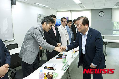 【서울=뉴시스】미래창조과학부가 19일 저녁 경기도 성남시 분당구 글로벌R&D센터 소프트웨어정책연구소에서 '대학 소프트웨어(SW)교육 혁신 및 확산방안' 을 주제로 '창조경제 실현을 위한 제14차 ICT정책 해우소' 토론회를 개최했다. 최재유 미래창조과학부 제2차관(오른쪽)이 토론회 참석자들과 인사를 나누고 있다. 2015.06.21. (사진=미래창조과학부 제공)