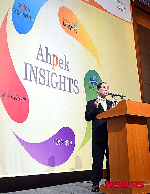 【서울=뉴시스】8일 오전 서울 소공동 롯데호텔에서 열린 'Ahpek INSIGHTS 안충영 동반성장위원장 초청 강연회'에 참석한 안 위원장이 조찬 강연을 하고 있다. 2015.07.08. (사진=한국중견기업연합회 제공)