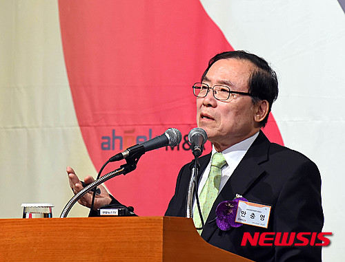 【서울=뉴시스】8일 오전 서울 소공동 롯데호텔에서 열린 'Ahpek INSIGHTS 안충영 동반성장위원장 초청 강연회'에 참석한 안 위원장이 조찬 강연을 하고 있다. 2015.07.08. (사진=한국중견기업연합회 제공)