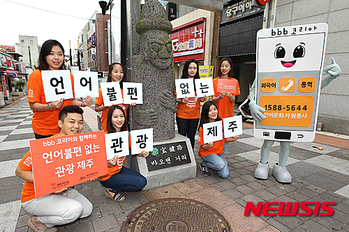 【서울=뉴시스】언어·문화 NGO 비비비코리아가 10일 제주도 바오젠거리에서 ‘언어불편 없는 관광제주 만들기’ 캠페인을 진행하고 있다. 2015.07.10. (사진=비비비코리아 제공)