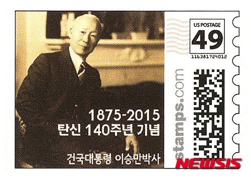 【뉴욕=뉴시스】노창현 특파원 = 미국서 이승만 초대 대통령의 우표가 발행됐다. 우표 제작 대행사 골든 애플즈(대표 이정)는 30일 "건국대통령 이승만 박사의 탄신 140주년 기념우표와 서거 50주기 추모 미국 우표를 지난 20일 미 우정국의 승인을 받아 제작했다"고 밝혔다. 우표 액면가는 49센트로 한 시트당 우표 20장이 인쇄됐으며 일반에 판매되지 않고 각각 3시트가 한국의 이승만 박사 기념사업회에 기증될 예정이다. 2015.07.30. <사진=골든애플즈 제공>