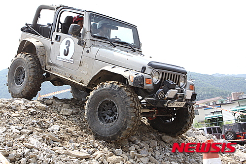 【인제=뉴시스】한윤식 기자 = 제2회 바퀴축제가 강원 인제잔디구장 일원에서 열리고 있는 가운데 1일 4×4 오프로드 자동차 대회 참가자들이 멋진 경기를 선보이고 있다. 2015.08.01.