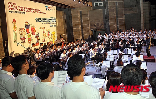 【제주=뉴시스】 고동명 기자= 15일 오후 제주해변공연장에서 제주국제관악제 광복절 경축음악회가 열리고 있다. 2015.08.16.