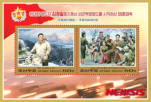 北 선군혁명령도 55돐, 국가경축 우표 발행