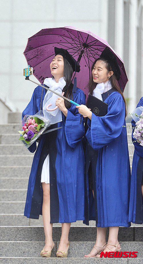 【서울=뉴시스】장남수 인턴기자 = 2014학년도 후기 학위수여식이 열린 25일 오전 서울 용산구 숙명여자대학교에서 졸업생들이 기념촬영을 하며 즐겁게 웃고 있다. 2015.08.25.