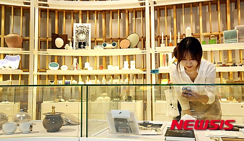한국공예·디자인문화진흥원이 새롭게 단장하여 오픈한 청와대 사랑채 기념품점은 전통과 현대를 아우르는 공예디자인 문화를 체험하고 확인할 수 있는 공간으로 공예디자인 문화상품, 특화상품, 로고상품 등 총 1,000여 점의 상품을 판매한다. 2015.08.27. (사진=한국공예디자인문화진흥원 제공)