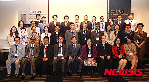 【서울=뉴시스】김진아 기자 = 17일 서울 팔래스호텔에서 개최된 아시아법령정보네트워크(ALIN) 국제컨퍼런스, '아시아의 경제성장과 공공성 법제'에서 참석자들이 기념촬영을 하고 있다. 2015.09.17. (사진=한국법제연구원 제공)