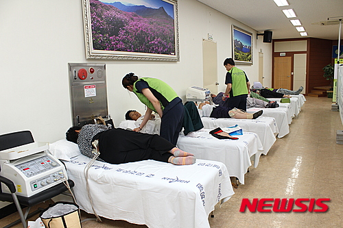 【창원=뉴시스】강경국 기자 = 경남농협(본부장 김진국)이 22일 창원힘찬병원(병원장 안농겸)과 함께 합천동부농협(조합장 김명기) 관내 농업인 250여 명을 대상으로 농부병 해소와 건강증진을 위한 농업인 행복버스 의료지원 활동을 펼치고 있다. 2015.09.23. (사진=경남농협 제공)