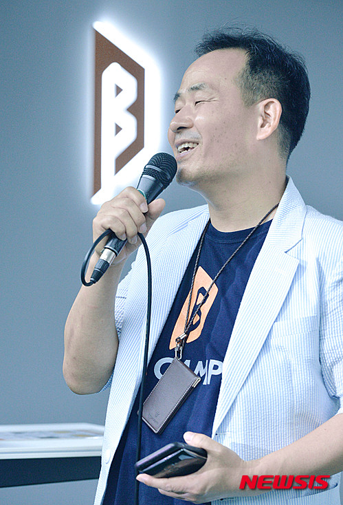 【서울=뉴시스】박문호 기자 = 24일 오후 서울 강남구 선릉로 은행권청년창업재단 디캠프에서 매달 마지막 주 금요일 열리는 스타트업을 위한 데뷔 무대 '디데이(D.DAY)'에서 김광현 은행권청년창업재단 디캠프 센터장이 인사말을 하고 있다.