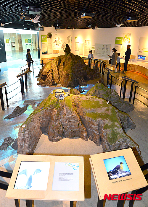【서울=뉴시스】김동민 기자 = ‘독도의 날’인 25일 오후 서울 서대문구 독도체험관을 찾은 시민과 학생들이 독도 모형이 설치된 체험관을 둘러보고 있다.