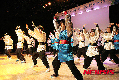 【서울=뉴시스】임태훈 기자 = 6일 서울 강남구 청담동 일지아트홀에서 열린 ‘2015 벤자민인성영재페스티벌’에서 벤자민학교 강남학습관 학생들이 국학기공을 선보이고 있다. 2015.11.06.(사진=벤자민인성영재학교 제공)